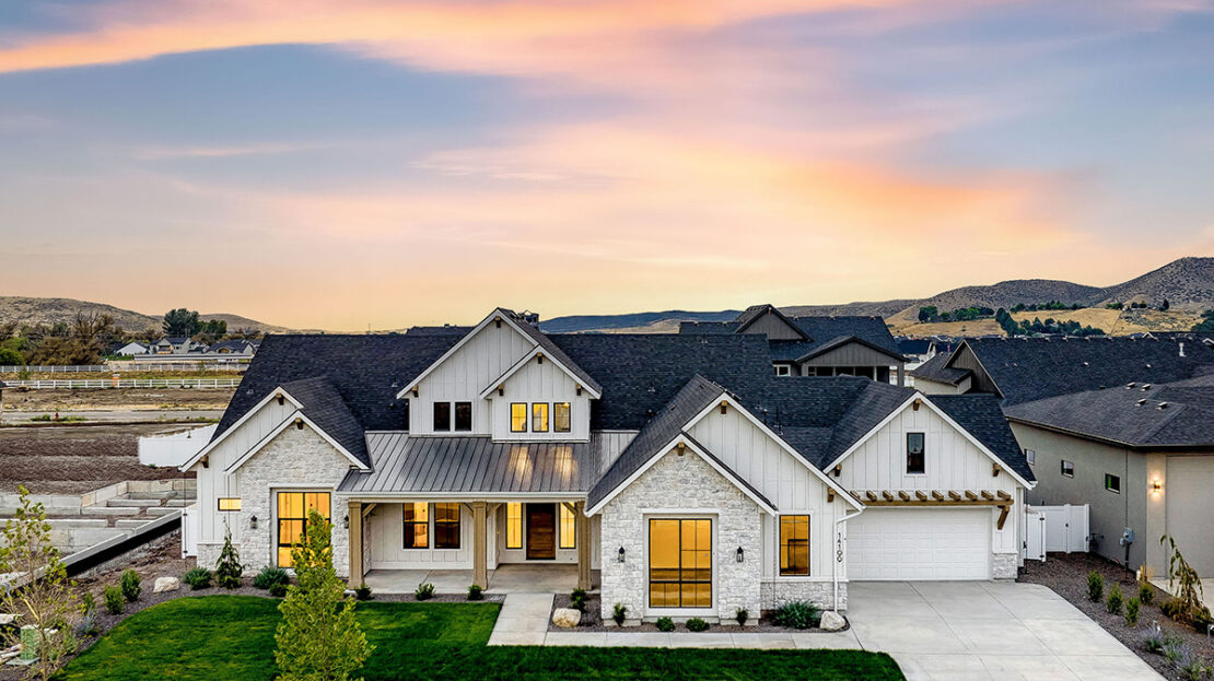 Step into this exquisite Magnolia home, where a 23-foot vaulted ceiling extends from the entry through the great room and out to the covered patio, creating a seamless indoor-outdoor living experience. The gourmet kitchen boasts a countertop-to-ceiling tile backsplash, ample storage, and backyard views, while the great room is anchored by a sleek platform fireplace. The corner primary suite offers private patio access and abundant natural light through 8-foot windows. The luxurious primary bath is a serene retreat, featuring a dual-entry tiled shower, freestanding tub, and 13-foot vanity. Additional highlights include a tech space, a full tiled shower in the main bath, and a shop expansion on the garage—ideal for extra storage or workspace.