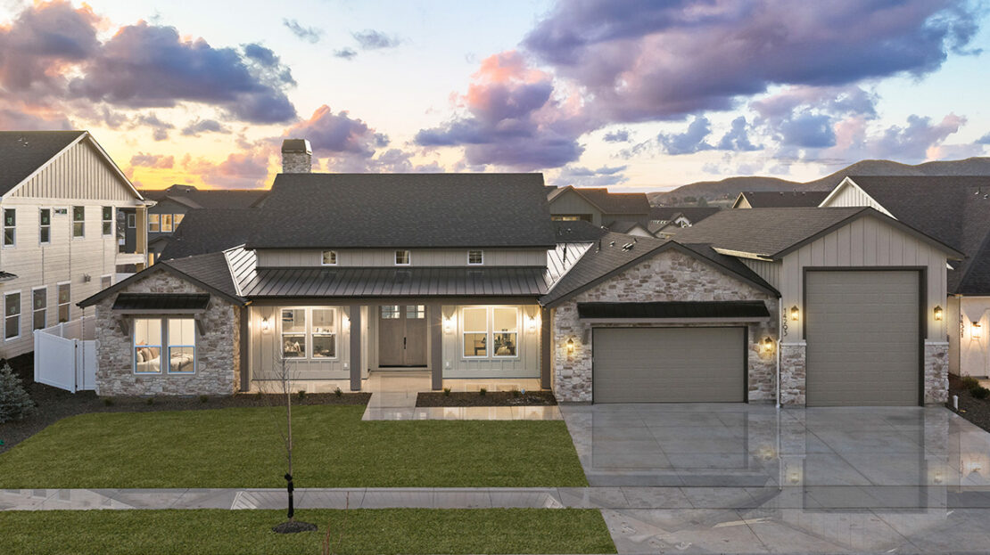 Set on a large homesite in the desirable Estates at Dry Creek Ranch, this new Topaz home includes an RV garage and a multi-gen guest suite with its own private living room. Enter through the covered porch into the great room that features an open-concept floorplan anchored by a large platform fireplace. Steps away, the chef’s kitchen enjoys a massive island, plenty of counterspace, and a large walk-in pantry. Tucked away is the primary suite that includes a bath with a freestanding soaking tub, dual vanities, a fully tiled walk-in shower, and a large walk-in closet. Two additional bedrooms share a full bath, with a centrally located powder room. The private multi-generational suite includes its own bedroom, bath, and private entrance off the porch.