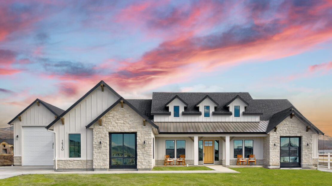 The Amethyst creates a grand statement from the moment you see it. Enjoy the 3-car side load garage design, which accentuates the gorgeous entry under the large covered porch. Enter the home to an elongated entry with a double door office to your left and then step inside one of the largest great rooms that we offer with its towering windows and centered fireplace. The booming kitchen matches the grandeur in the heart of the home with an oversized pantry and vast amount of counterspace. The master suite includes tall windows with views out to the beautiful yard, a soaker tub, and tiled walk-in shower. The guest suite situated next to the flex room offers a variety of living options, depending on your needs. Best of all, The Amethyst is part of The Estates at Dry Creek Ranch, which features acreage homesites with estate-like homes and the best in new home finishes.