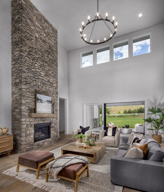 The Centennial is the largest floorplan option you’ll find in The Estates at Dry Creek Ranch. At 5 bed, 6 bath, 4,844 SqFt you’ll be hard pressed to find a home with more amazing design features. An inviting covered porch leads you into the home and an elongated entry opens to an expansive great room. A main level master suite with a beautiful set of windows offers views out to the large backyard. The gourmet kitchen is the perfect place for entertaining and the butler’s kitchen provides even more space to prepare your amazing meals. A secluded guest suite is a great retreat space for your visitors. Upstairs features three of the home’s bedrooms as well as a loft space. One of the most impressive design elements is the open to below effect, which fills the home with light, ambiance, and a connection to the great Idaho outdoors.